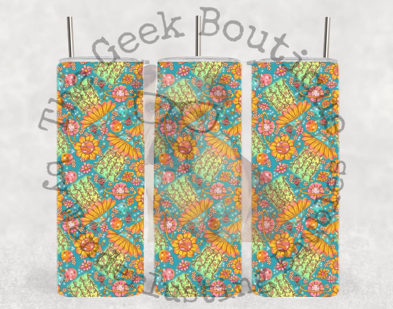 Alien Hippie Floral UFO Cryptid Flower Child Tumbler