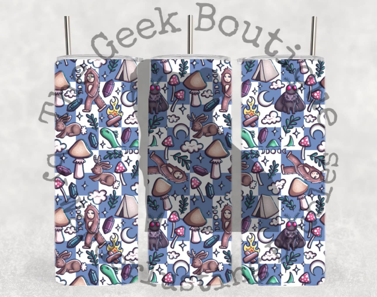 Cryptid Picnic Cute Mushroom Bigfoot Nessie Mothman Tumbler