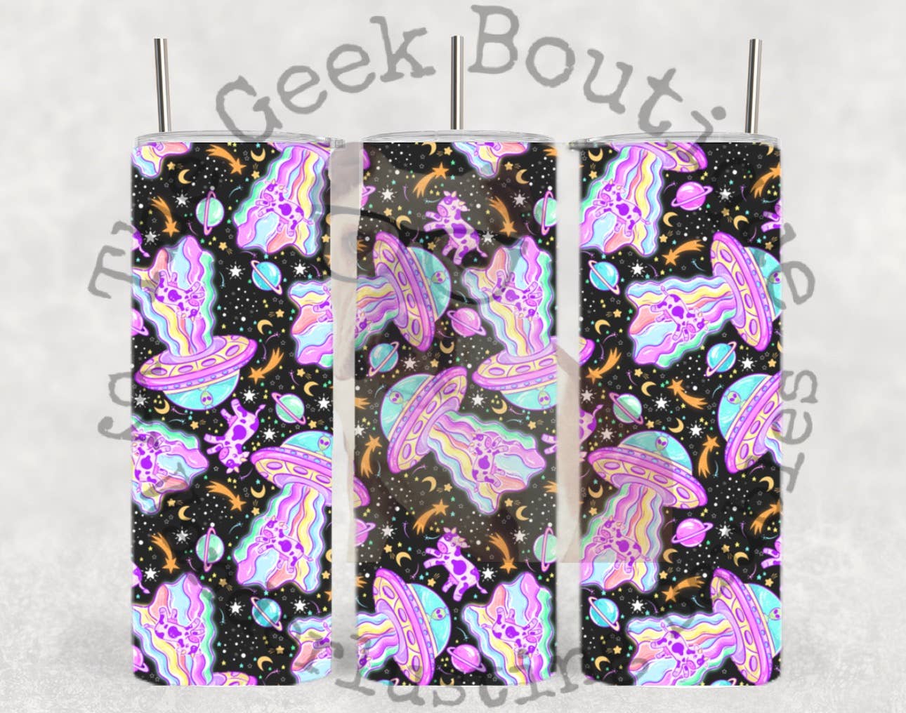 Neon Alien Cow Abduction Space UFO Paranormal Tumbler