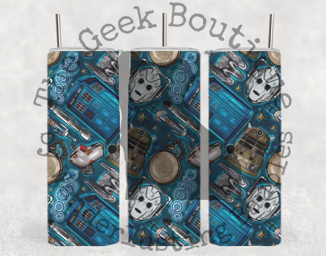 Sci Fi Police Box Time Travel TV Show Collage Tumbler