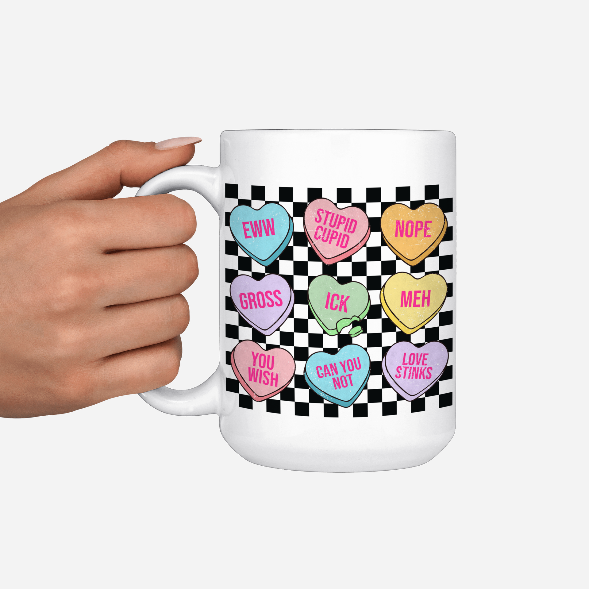 Checkered Anti Valentines Day Hearts - Ceramic Mug 15 Oz