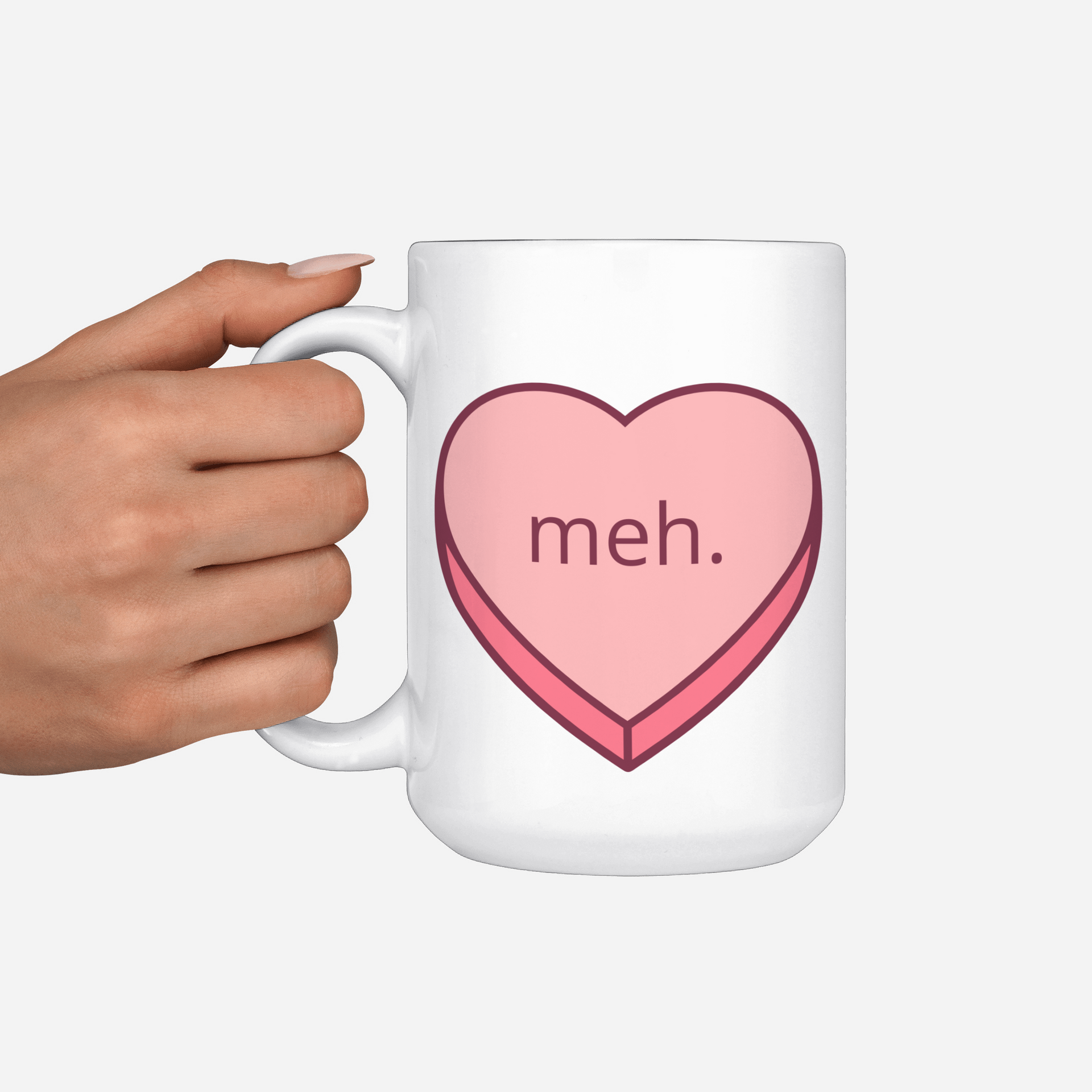 Meh Snarky Valentines Day Heart Ceramic Mug 15 Oz