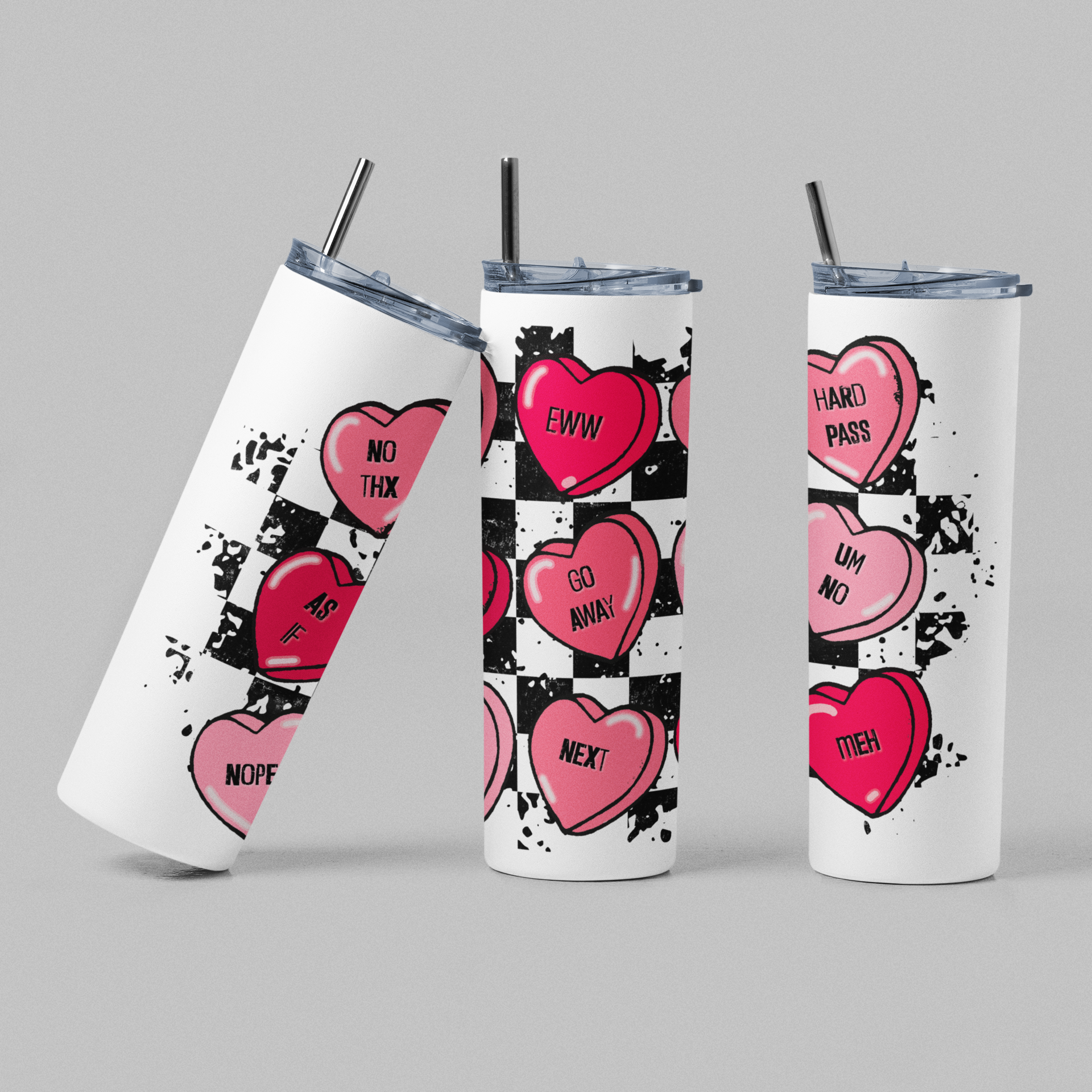 Pink Red Black Checkered Anti Valentines Day Hearts Tumbler