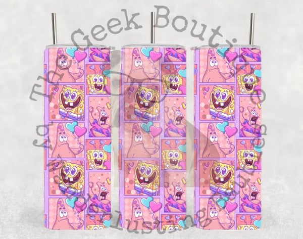 Sponge & Star Valentines Day Pink Cartoon Tumbler