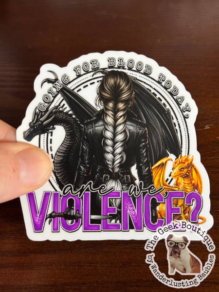 Vinyl sticker, waterproof, bookish, book, fourth wing, book cover, bibliophile, nerd, geek, the geek boutique, romantasy, romance, fantasy, new adult, Violet Sorrengail, Dragon, Tarin, Andarna Going for blood today, are we violence?