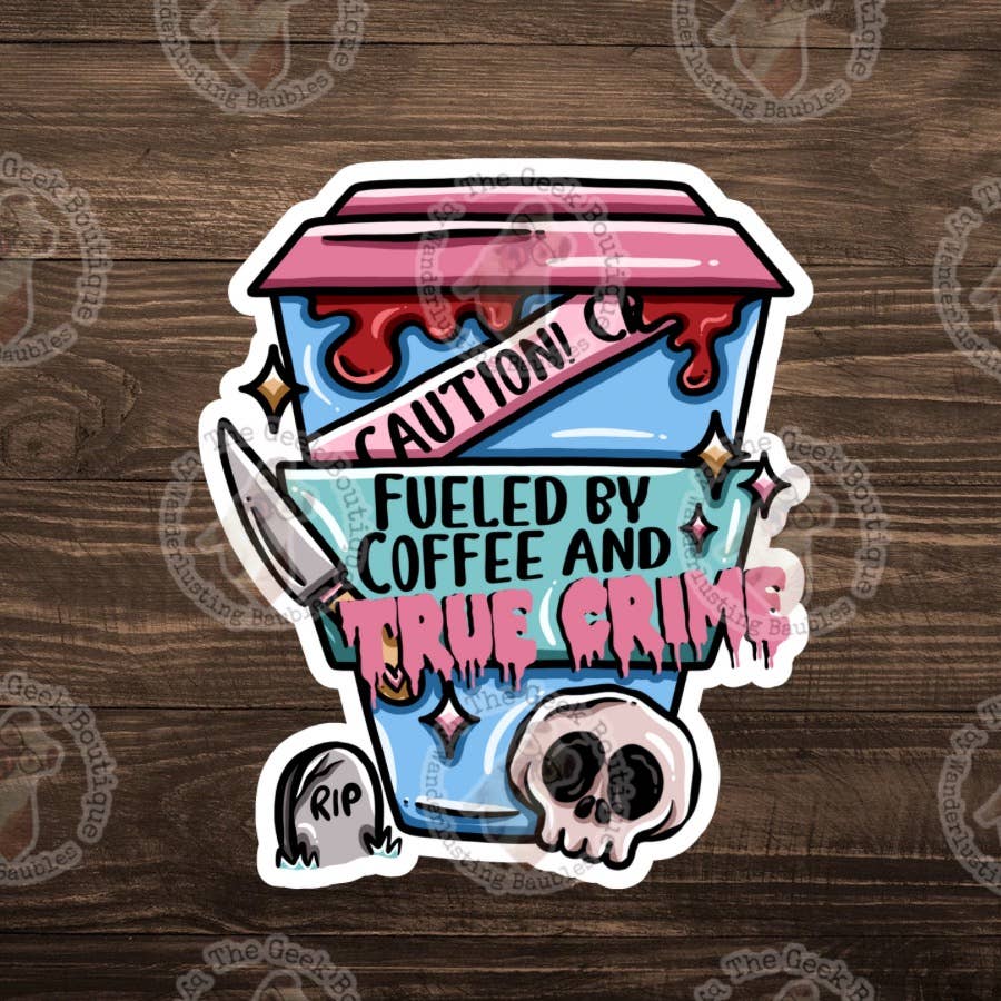 3" Vinyl Fueled By Coffee True Crime Book Thriller Sticker