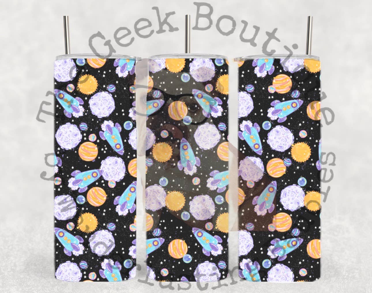 Bright Space Planet Spaceship Moon Galaxy Science Tumbler