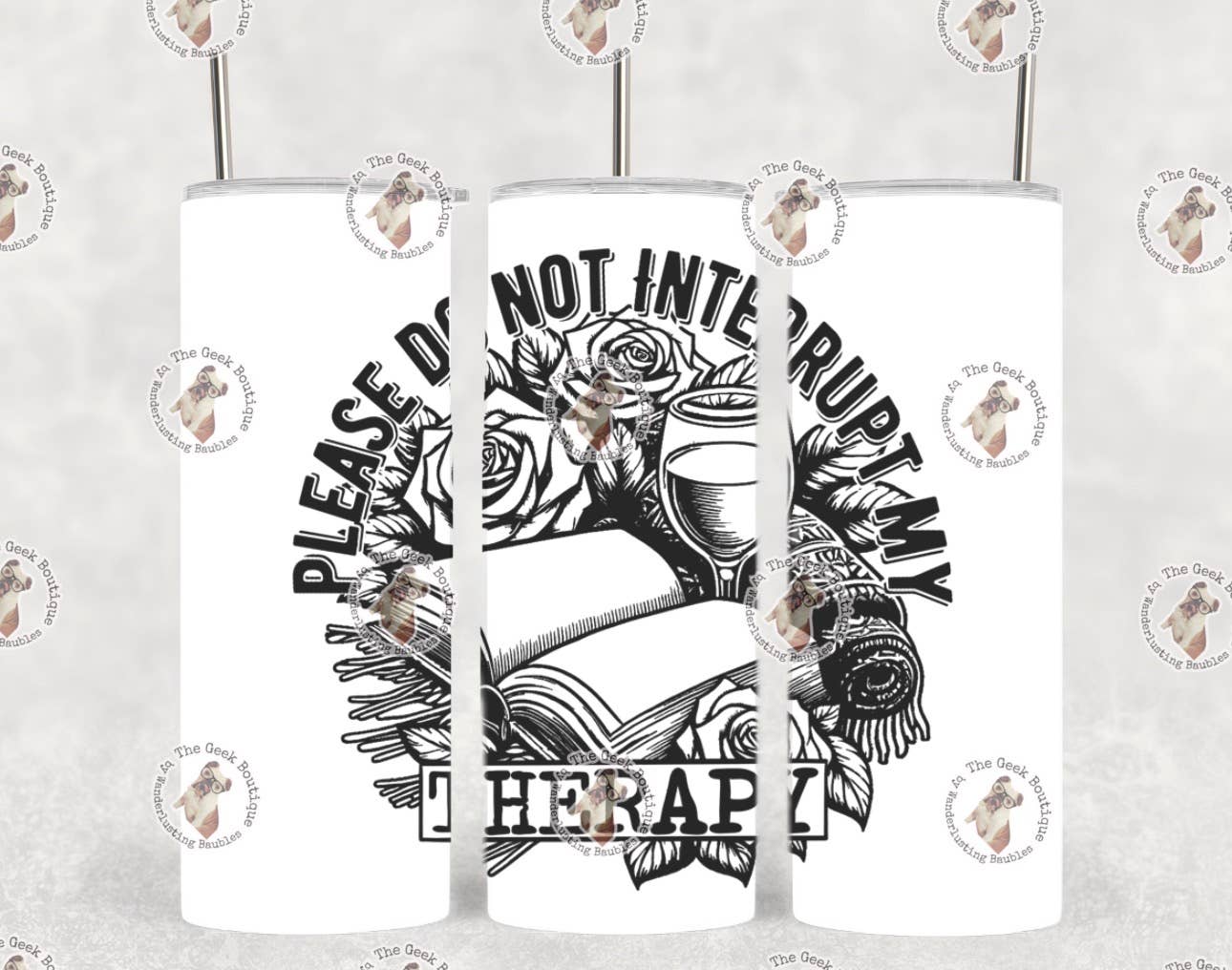 BW Reading Therapy Books Wine Introvert Self Care Tumbler