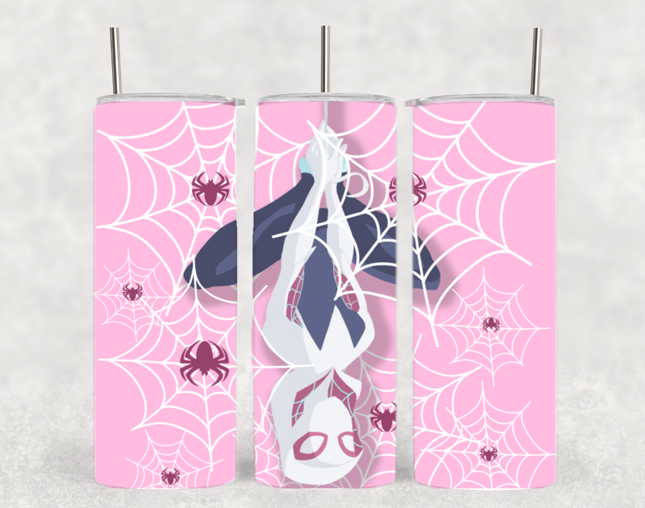 Pink SpiderGwen Spiderweb Upsidedown Comic Superhero Tumbler