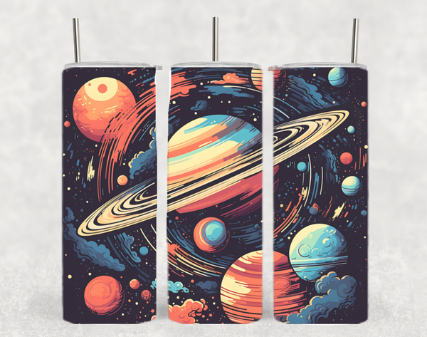 Planet Solar System Space Themed Colorful Green Glow Tumbler