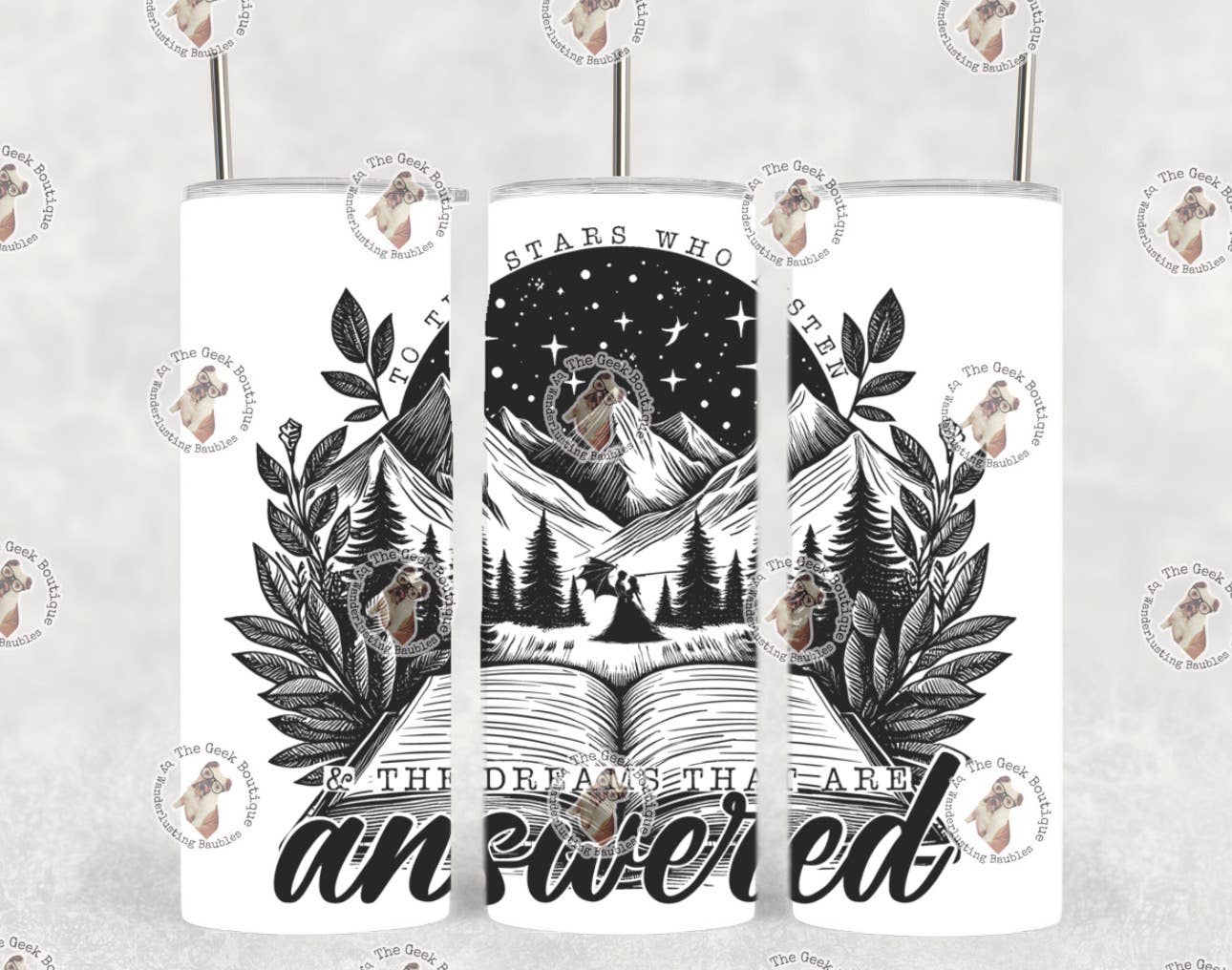 SJM Stars Who Listened Simple BW Fantasy Book Tumbler