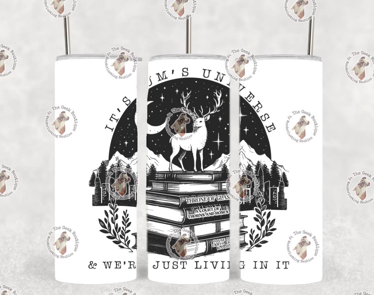 SJM Universe We Just Live In It Bookish Fantasy Tumbler