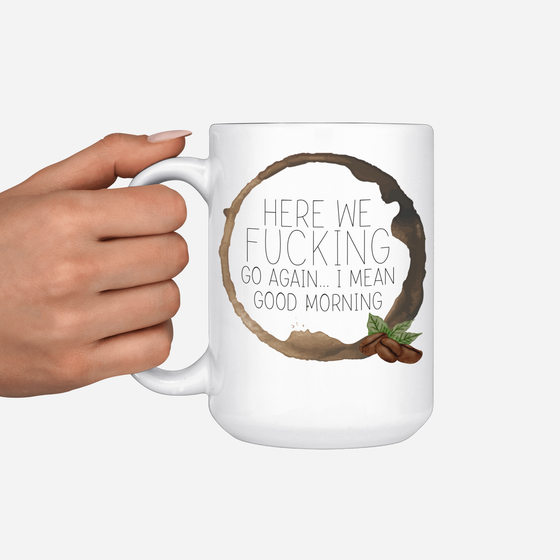 Snarky Good Morning Here We Go Again Ceramic Mug 15 Oz