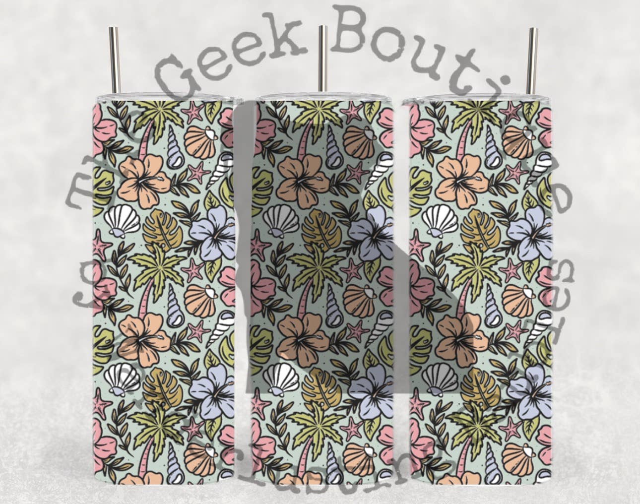 Tropical Beach Shells Summer Vacation Palm Tree Tumbler